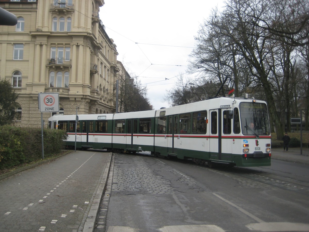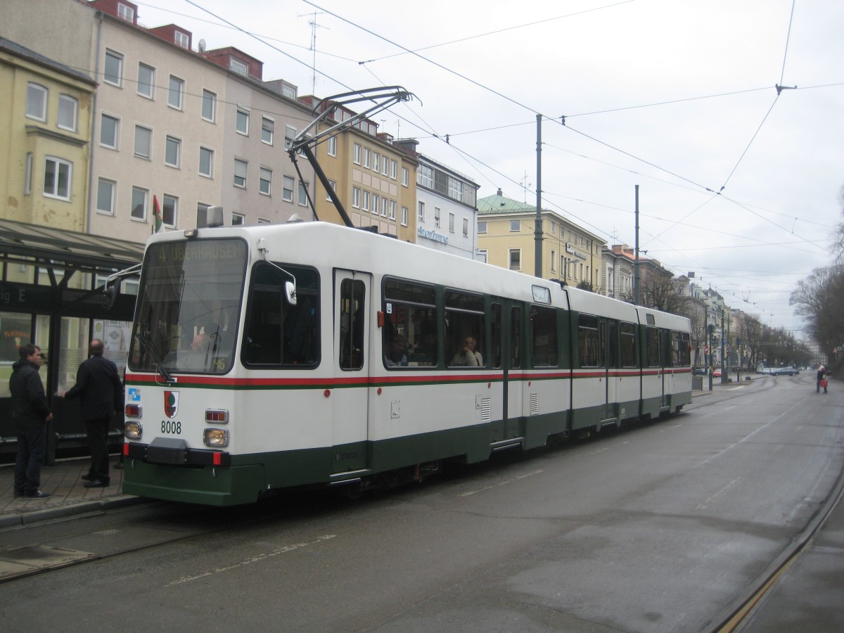 | Sonderfahrt "Rund um den Königsplatz" am 11.03. 2012Diese Sonderfahrt fand am 11.03. 2012 zu Ehren des alten Königsplatzes statt- befahren wurde die Streckenäste nach Stadtbergen und nach Göggingen und alle Bahnsteige des Königsplatzes sowie die Theodor- Heuß- Platz Schleife da diese bekanntermaßen stillgelegt wird... Eine Besonderheit stellt die Fahrt nach Stadtbergen dar, da diese normalerweise nie von einem M 8 C befahren wird- die Sonderfahrt fand statt mit dem M8 C 8008Theodor- Heuß- Platz (und die Schleife)- Diese Schleife wird stillgelegt und wurde wohl das letzte mal befahren dann ging es weiter nach Oberhausen zur alten Schleife (Man beachte die Linienanzeige- diese wird seit 2001 nicht mehr gebraucht) auch hier beachte die Linienanzeige ( 4 Haunstetten Nord) dieses Ziel wird heutzutage von der Linie 2 befahren... Im Hintergrund sieht man schon Bauzäune.... zum Königsplatz- auch hier wieder: Man beachte die Linienanzeige Hier fuhr bis 1960 die Linie 6 (Bild befindet sich am Ulrichsplatz) am Moritzplatz hatte der Wagen 13 Minuten Aufenthalt bevor er weiter fuhr... denn die Augsburger Feuerwehr rückte eigens für den Foto- Termin mit einem Drehleiterwagen an... Hier konnten die Vertreter der Presse noch bilder vom Königsplatz machen Auch hier beachte man die Linienanzeige 1 Stadtbergen dies war bis in die 80er der Fall gleich befährt der M 8 C die Eingleisige Trasse... hier an der Haltestelle "Stadtberger Hof"- diese wird nach dem Königsplatzumbau in dieser Form auch nicht geben. Diese Aufnahme ist in sofern besonders, da hier nie M 8 C im Plandienst fuhren Und zurück ging es zum Hauptbahnhof wo die Sonderfahrt einen außerplanmäßigen "Halt" anfahren musste... Vandalisten zündeten den Papierkorb an der Haltestelle an- die Fahrer der Sonderfahrt mussten diesen wieder löschen... man beachte auch hier wieder die Linienanzeige der Linie 64 in Richtung Friedberg West. Dies ist eine Umbaulinie die die Stadt Augsburg prägen wird- für die nächsten 2 Jahre auch wenn man in diesen 2 Jahren leider nur sehr selten einen M 8 C zu sehen bekommt... danach fuhr der M 8 C wieder zur Hauptbahnhofschleife an dieser Stelle wo jetzt der M 8 C steht, wird im Jahr 2019 der Tunneleingang stehen- die Strecke wird oberirdisch stillgelegt (sowie die Schleife) Die Hauptbahnhof Schleife wurde vom M 8 C zweimal hintereinander befahren. Dann ging es weiter und (wieder) in Richtung Stadtbergen- hier fuhr der Wagen bis zur Bgm. Bohl Strass- dort befindet sich eine kaum genutze Wendeschleife Richtung Stadtbergen- dieser linke nebenzweig wird kaum benutzt von der Strassenbahn Bürgermeister Bohl Strasse- hier hatte die Strassenbahn einen kurzen Aufenthalt - in der Bürgermeister Bohl Strasse (aber Stadteinwärts) Die Sonderfahrt setzte sich über den Hauptbahnhof, Königsplatz, Rotes Tor, Ulrichsplatz wieder am Königsplatz fort... auch hier wieder: Linie 2 / Göggingen nun fuhr die Strassenbahn weiter in Richtung Göggingen In Göggingen wurden wenig Fotohalte gemacht, da hier die M 8 C noch täglich(Mo- FR) anzutreffen sind Weiterführendes: Zu den Videos der Sonderfahrt nach obenZu den M 8 C im Betriebsalltag Informationen zum Königsplatz- Umbau |